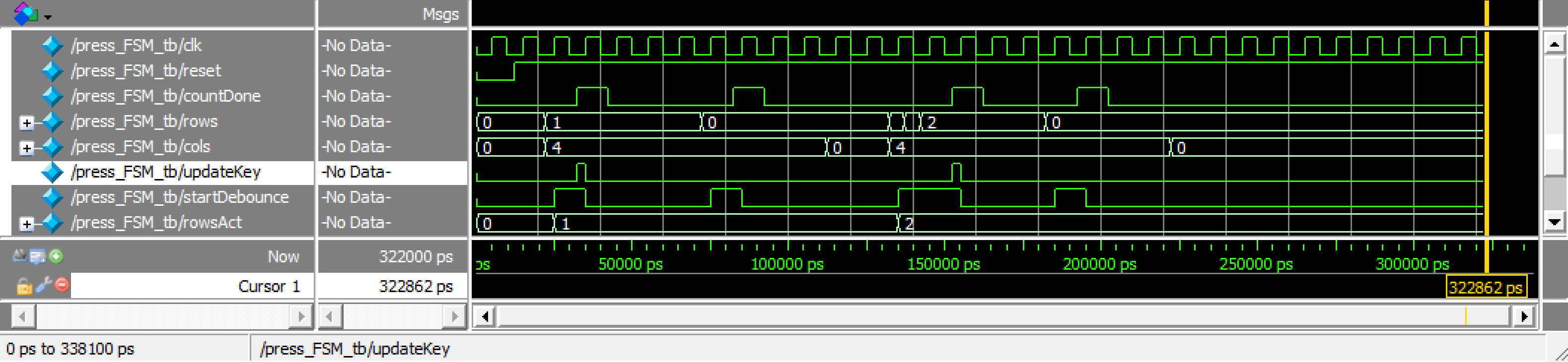 - A main FSM to determine “an actual press” on the keypad, design described below